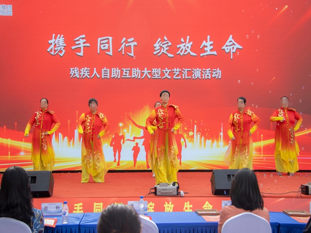 汇演节目由高校志愿者与残疾人代表20 余个精彩节目联袂呈现,以艺术形式深刻阐释了“自助互助、共融共生”的康复理念。