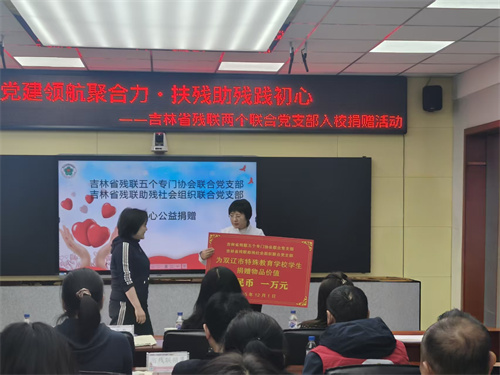 为深入学习贯彻党的二十大精神,切实发挥党建引领作用,践行社会责任与担当,在寒意渐浓的冬日为特殊儿童送去温暖与关怀,近日,吉林省残疾人专门协会联合党支部、吉林省残联助残社会组织联合党支部牵头,携手四平市残联、双辽市残联、双辽市教育局及长春市吉雪机械设备有限公司等单位,赴双辽市特殊教育学校开展“党建统领聚合力 扶残助教践初心”爱心捐赠活动,并同步开展国际残疾人日主题党日活动。