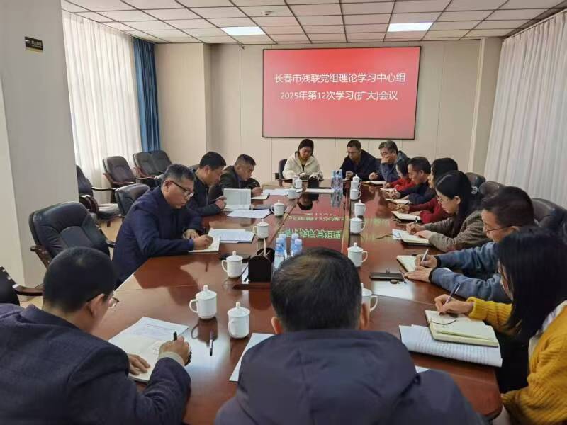 12月22日下午,长春市残联召开党组理论学习中心组2025年第12次学习(扩大)会议。党组理论学习中心组成员出席会议,党组书记、理事长王俊飞主持会议,机关各部室及所属事业单位中层以上干部列席会议。