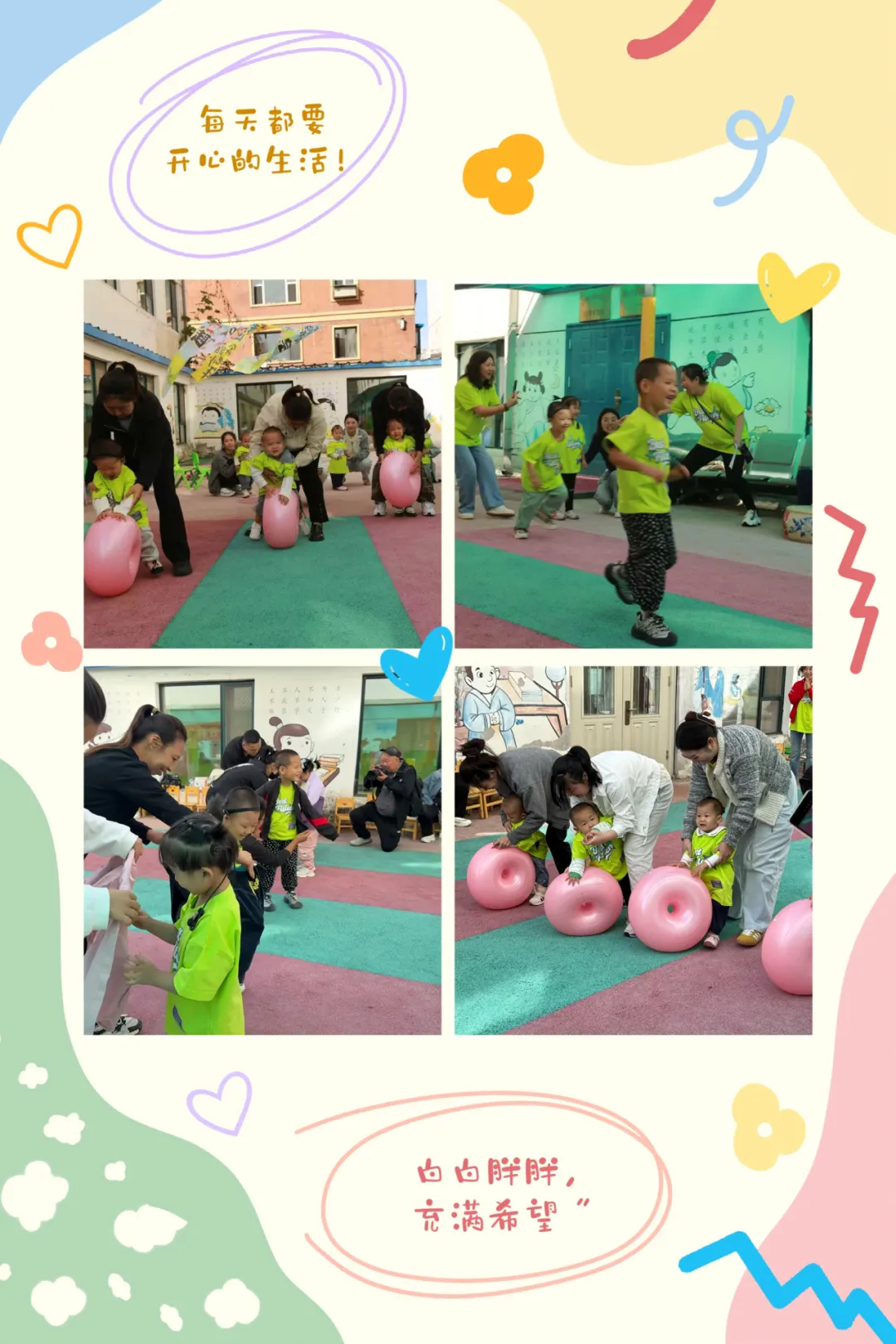运动会以两场充满活力的舞蹈拉开帷幕。集体班的孩子们带来舞蹈《欢乐竹兜跳》,他们穿着整齐的服装,跟着节奏摆动身体,动作整齐又灵动,用肢体传递着快乐;亲子班孩子与家长共同演绎《加油鸭》,他们默契配合,温馨的互动瞬间让现场充满暖意,也展现出亲子间的亲密联结,赢得了现场阵阵掌声。