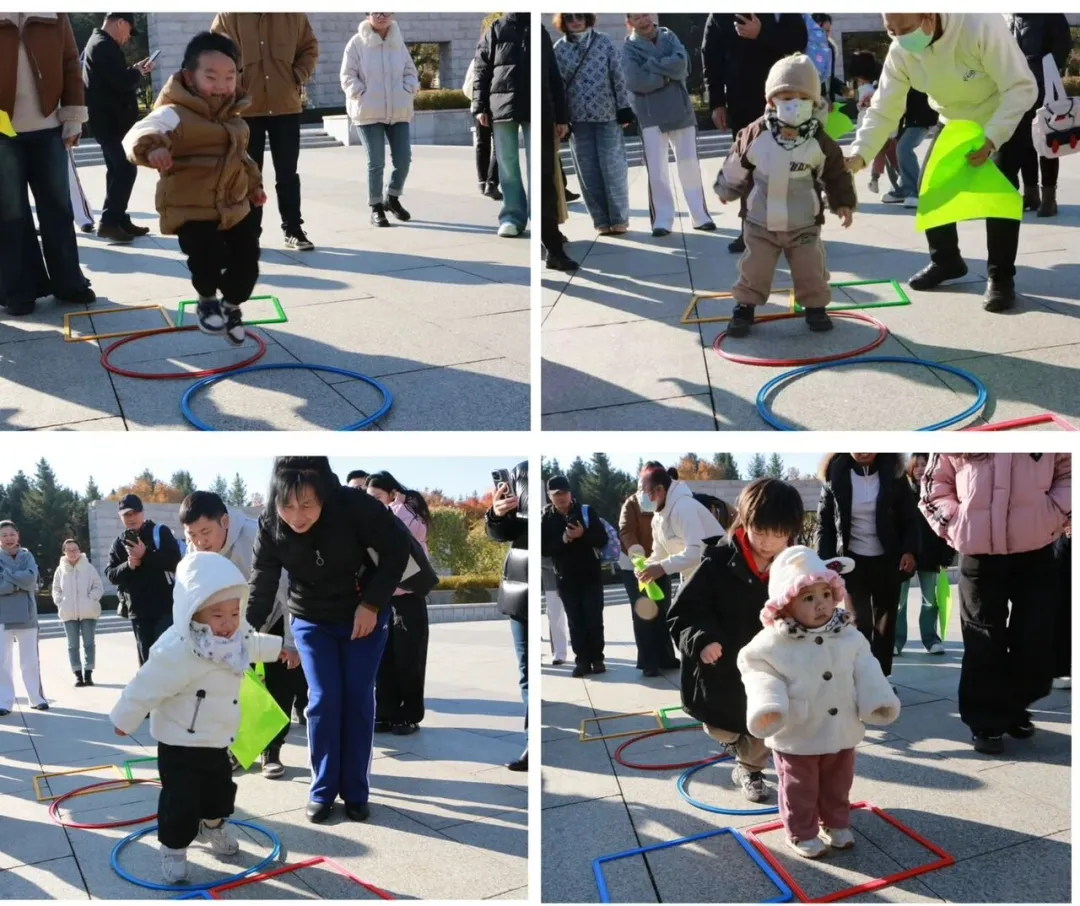 在丰富多彩的集体游戏环节中,将活动推向高潮。“跳格子比赛”锻炼着孩子们的平衡与协调;“揪尾巴”游戏充满了紧张与刺激,跑出了欢乐与活力;“布织布树叶粘贴画”让孩子们在亲子协作、同伴互助中,将秋天的美好定格在一幅幅充满创意的作品中。这些游戏不仅是体能的竞技,更是规则意识、团队协作精神的生动课堂,让每一个孩子都深深感受到集体活动的温暖与乐趣。