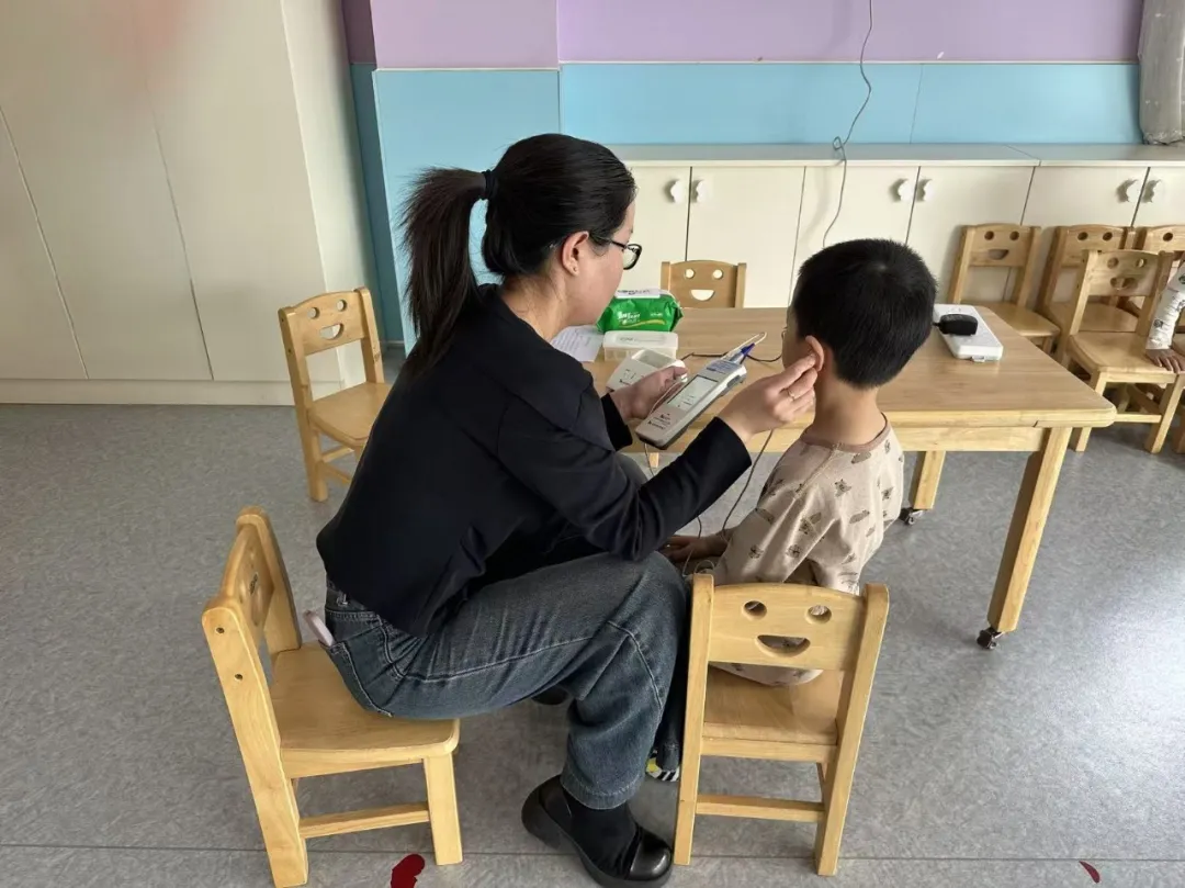 为精准守护幼儿听力健康,听力师还为孩子们逐一进行了专业的听力检测和耳部检查,细致排查听力及耳部健康隐患,同时向幼儿园老师同步科普儿童听力保护、早期听力异常识别等知识,为幼儿听力健康筑牢防护屏障。