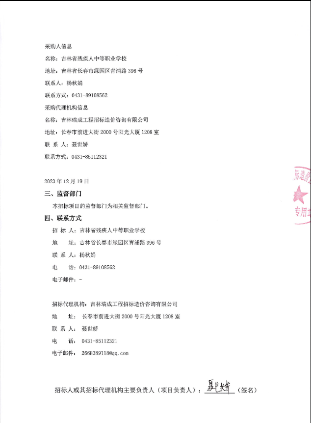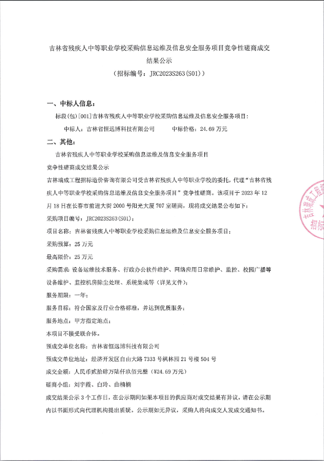 吉林省残疾人中等职业学校采购信息运维及信息安全服务项目竞争性磋商成交结果公示
