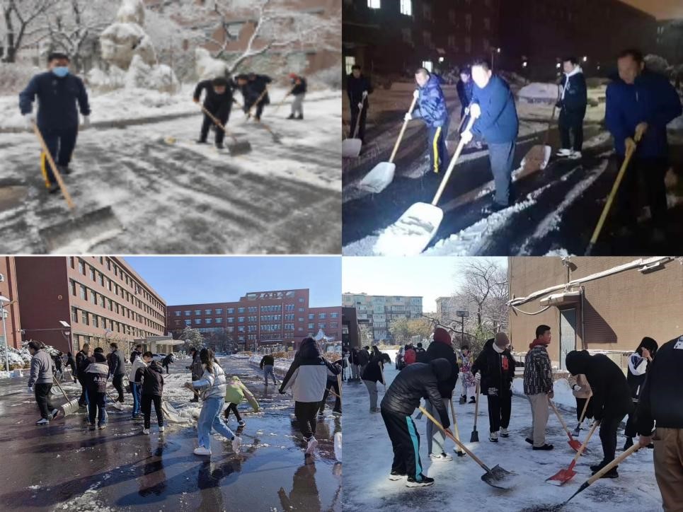 11月6日,长春迎来了初冬的第一场降雪,连续的雨雪天气带来了不可多得的美景,同时也给残疾学生出行带来诸多不便。面对极端暴雪天气影响,为保障我们的残疾学生出行安全,确保“随下随清、雪停路净”,保持校园道路通畅,在校领导班子的带领下,中职学校党员干部迅速组成突击小队,全力以赴开展清雪除冰工作,以实际行动践行为残疾人服务的宗旨。