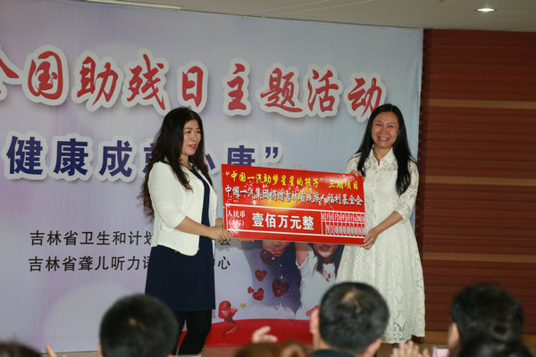 图为一汽集团向省残疾人福利基金会捐赠一百万元助残项目资金