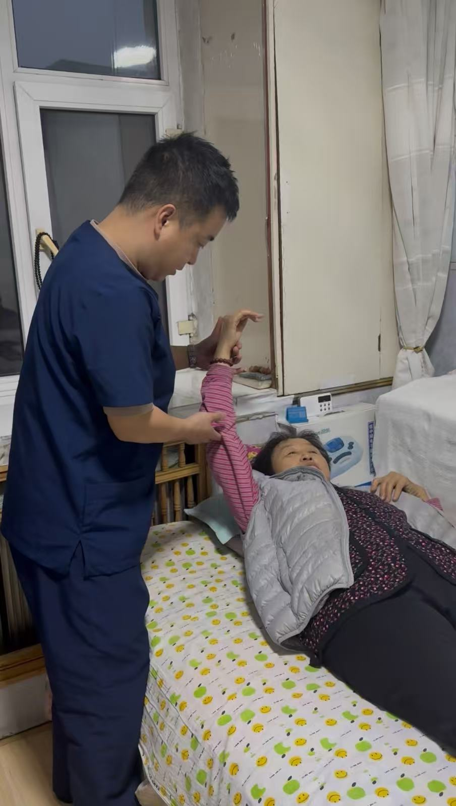 家住经开区双吉街道李大爷,因脑出血后遗症长期卧床,生活完全无法自理,处于鼻饲状态,家庭负担较重。自纳入居家康复服务范围后,专业康复团队根据其身体状况制定了个性化康复方案,通过针灸、推拿及肢体功能训练等系统康复,李大爷的功能障碍程度逐步改善。如今,他已能实现自主翻身和进食,显著提升了生活质量,有效减轻了家庭照料负担。