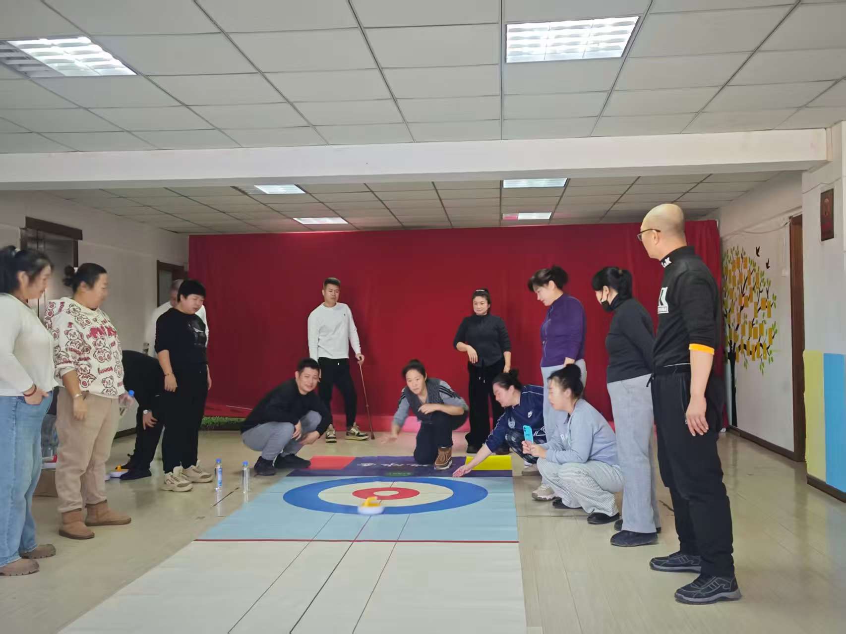 与此同时,白山市残联同步开展的旱地冰壶比赛正在室内场地紧张角逐。这项运动对体力要求不高,却十分考验策略、技巧和团队协作。赛场上,运动员们全神贯注,眼神紧紧锁定目标,每一次投掷前的深思熟虑、每一次击打后的精准落位、每一记扭转局势的精彩布局,都引来现场观众的阵阵掌声与喝彩。