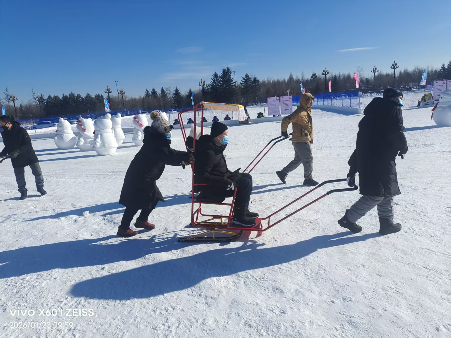 此次活动面向轻度肢体、听力、言语和智力四类残疾人,组织残疾人及其家属共计20余人参与。活动现场,工作人员对参与者详细讲解项目规则及注意事项,随后在工作人员和家属的陪同下,残疾人开始了一场酣畅淋漓、激情四射的冰雪运动之旅。在工作人员有序引导下,残疾人热情高涨地体验了雪地长龙、黄包车爬犁、雪地保龄球、雪圈漂移等丰富趣味冰雪活动,皑皑白雪之上洋溢着拼搏的英姿和灿烂的笑容,紧张刺激的氛围充斥在冰天雪地之间。