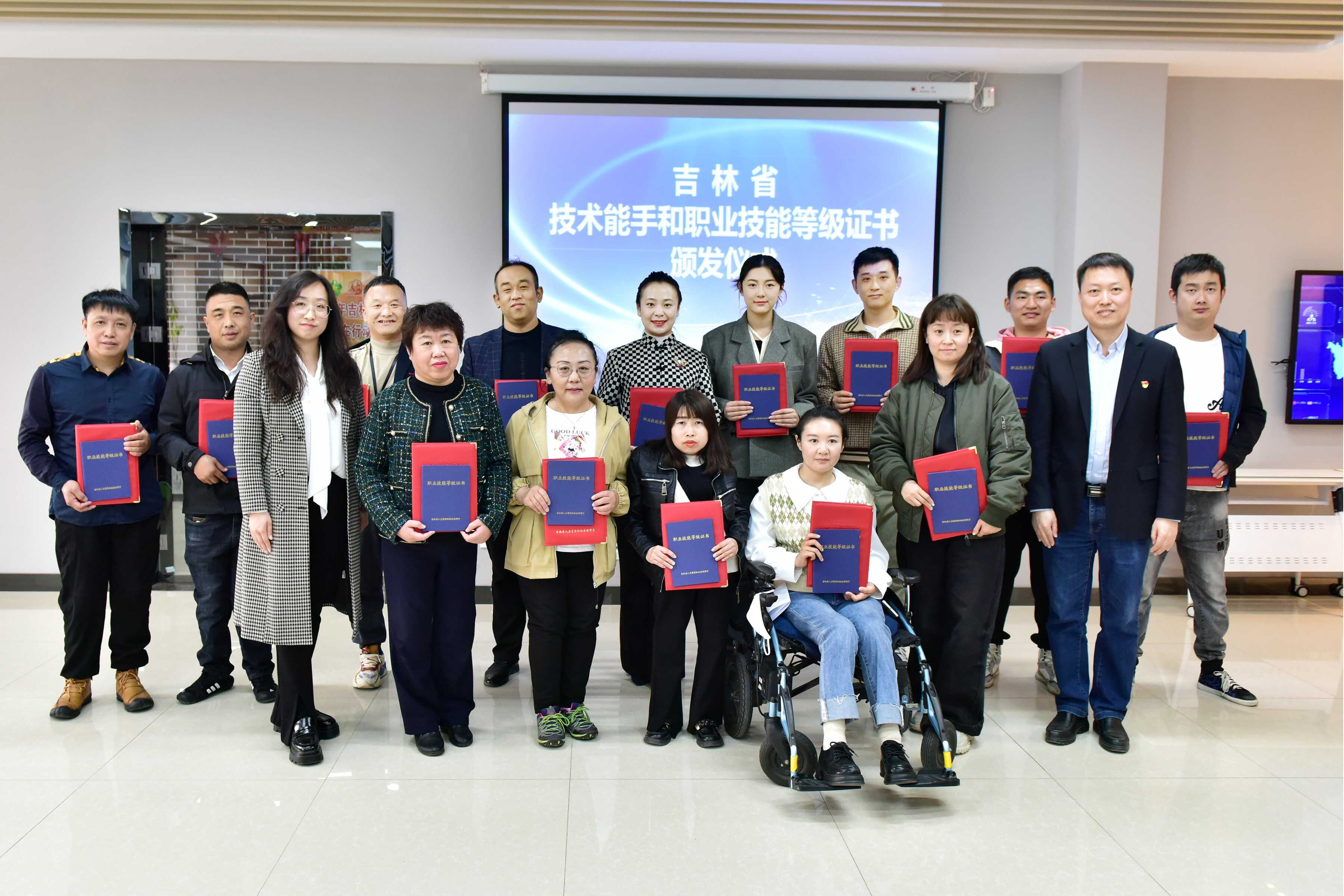 活动现场还为省残联组织申报并被省人社厅认定为“吉林省技术能手”和首批“新职业技能等级”资格的残疾人朋友发放证书。