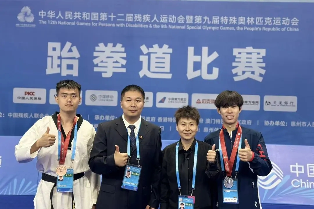 全国第十二届残疾人运动会暨第九届特殊奥林匹克运动会跆拳道比赛于2025年9月13日在广东省惠州市落幕。我省共派出2名运动员,一名教练、一名领队及工作人员参加比赛,取得1银1铜。