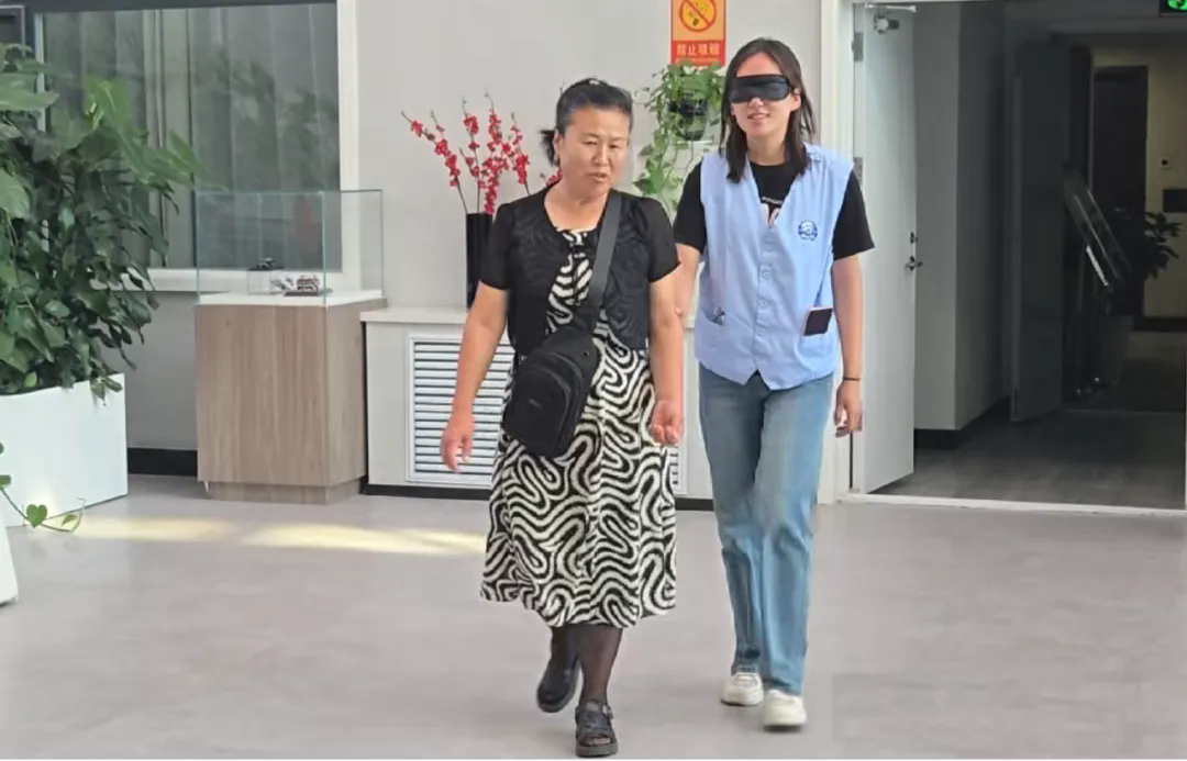 来自省残疾人康复中心的李悦宁老师在定向行走课程中,针对不同人群需求,分设两大教学方向,让志愿者、陪护与视障伙伴各有所学。课程现场,志愿者与陪护者自由结对,每对搭档需先后完成“视障者”与“引领者”的角色互换——一人用眼罩蒙住双眼模拟中途失明者,另一人则以陪护身份提供引领,完成“绕开障碍”“通过狭窄通道”“上下模拟台阶”等日常场景任务。让志愿者与陪护者通过亲身体验理解视障者需求,提升视障者安全保障引导。