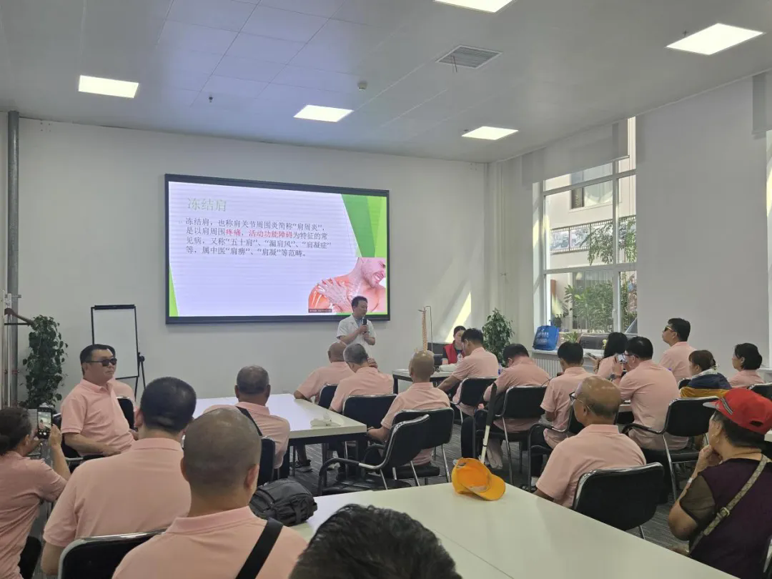 体能课上,老师辅助学员完成拉伸、平衡训练,汗水与笑声交织;而八段锦课程则更显从容,舒缓的音乐中,同侪老师清晰口令引导学员调整呼吸、舒展肢体,学员们跟随节奏慢慢摸索,在动静之间感受身体的变化,课堂氛围既温馨又充满力量。