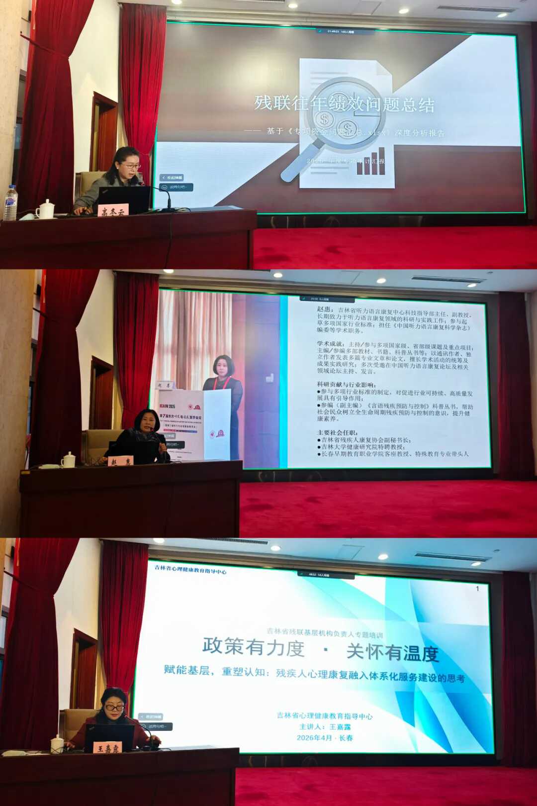 4月23日-24日,省残联在长春市举办2026年全省康复业务及财务管理培训班。本次培训由省残联康复部与计财部联合承办,培训班采取线上和线下相结合、专家讲座和工作交流相结合的立体化教学模式,分为财务管理和康复业务培训两个阶段进行。
