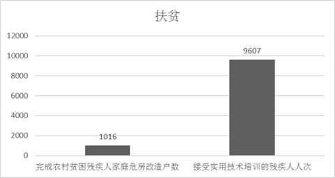 贫困残疾人扶持力度进一步加大。9607人次农村残疾人接受了实用技术培训,174 个残疾人扶贫基地安置1657名残疾人就业, 辐射带动4175户残疾人家庭增收。