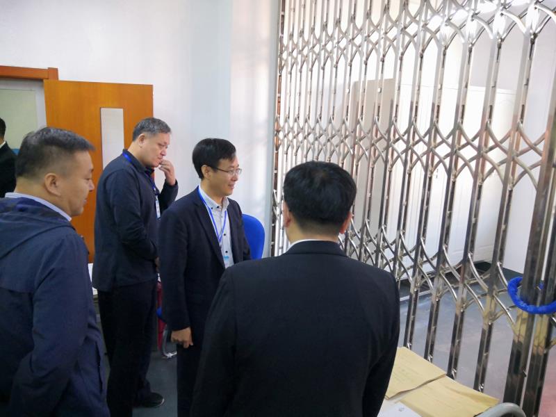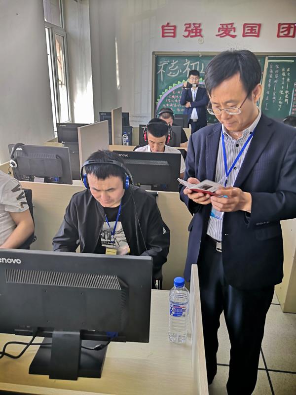 图为省残联副理事长李德富检查我校盲医考保密室