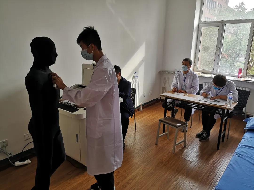 14时整,引导员把我们从候考区带到实践技能考试第一站,我们在考场用小黑人人体模型进行实践技能考试。熟悉的小黑人,熟悉的穴位,只因在考前的每天晚上,我们都会定时进行实操练习。