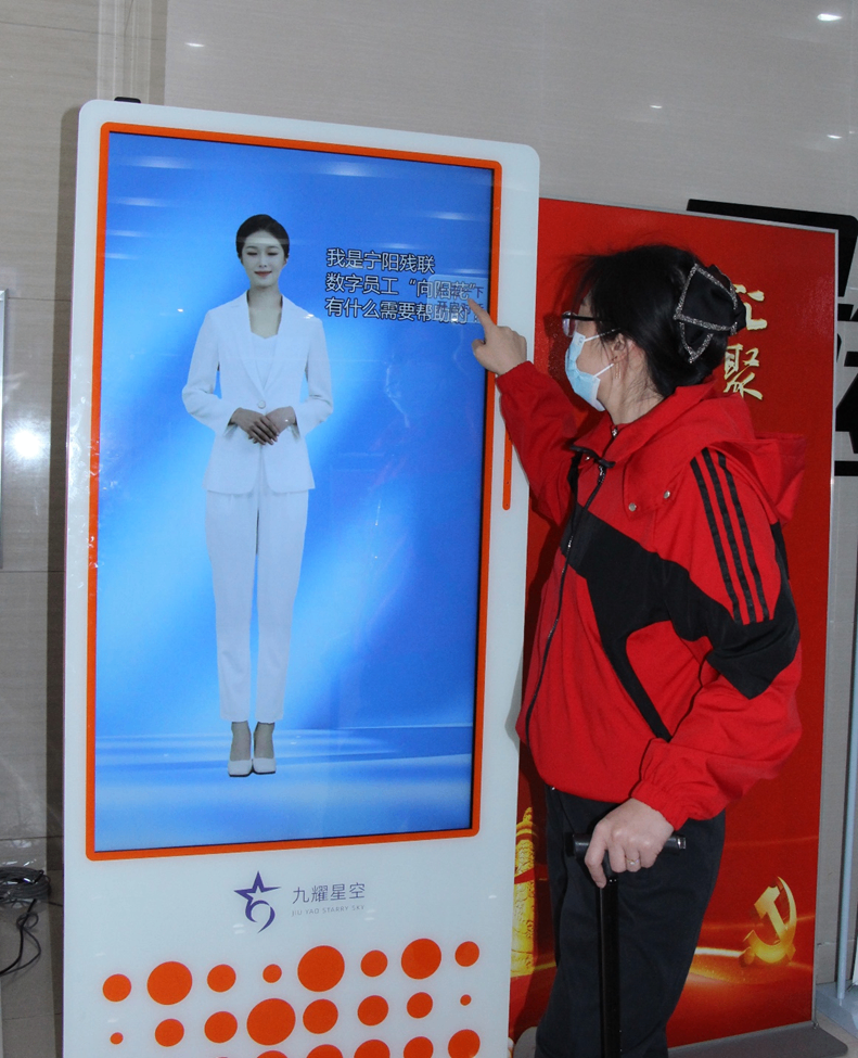 “我是一名残疾人,行动不太方便,怎么找工作呢?”3月10日,在山东省泰安市宁阳县政务服务中心大厅,前来办理残疾人证的轻度肢体残疾人刘女士,对着屏幕试探性地提问。“县残联正在实施残疾人就业帮扶项目,我先帮您登记就业需求信息…….”残联数字人“向阳花”马上以温和的语气微笑回应道,残疾人就业帮扶项目的文字介绍也随即显示在屏幕上。